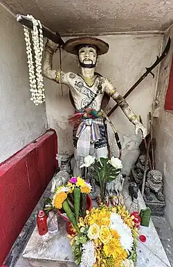 Currently, at Doi Kham, there is a temple named Wat Phra That Doi Kham, where a monument to Khun Luang Wirangka is enshrined in the temple courtyard near the chedi. This location, Doi Kham, is also the dwelling place for the spirits of Lawa chiefs named Pu Sae and Ya Sae, who are ancestors of Khun Luang Wirangka. A ritual to "feed the spirits" of Pu Sae and Ya Sae with a water buffalo is held here either annually or once every three years.[9]