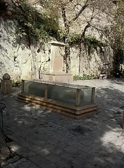 Khaju Kermani tomb is an Iranian tomb. It is located north of Shiraz, on Sabooy hill off the Shiraz–Isfahan road. It is in Allahu Akbar Gorge. His grave overlooks the Qur'an Gate. Roknabad spring passes near the tomb.[1]