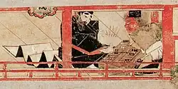 A legend describing Ki no Haseo's game of sugoroku with an oni might have been in circulation as early as late as in the twelfth century, though written evidence only goes back to the late thirteenth century.[33] The earliest versions have been identified in Zoku Kyōkunshō (続教訓抄), a musical treatise written at some point after 1270 by the court musician Koma no Tomokazu (狛朝葛; 1247–1331), and in a number of commentaries on the anthology Wakan Rōeishū.[34] A version of this legend is also preserved in the scroll Haseo Sōshi[35] from the collection of the Eisei Bunko Museum.[36] It was formerly assumed that it was originally created in the fifteenth century, but the consensus shifted towards late thirteenth or early fourteenth century (late Kamakura period) dating.[37] It is considered an early example of otogizōshi,[35] though due to its relatively short length and early dating it is sometimes described as a setsuwa in emaki form instead.[38] The version of the legend preserved in it has been translated into English as A Tale of Lord Haseo by Noriko T. Reider[39] and as Haseo and the Gambling Stranger by Kristopher L. Reeves.[37]