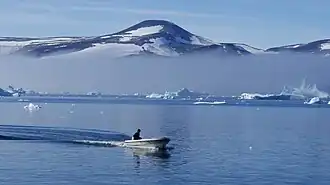 Located in the southern part of Melville Bay, Kiatassuaq Island has an elongated shape, with an east–west orientation. It has an area of 180.9 km2 (69.8 sq mi), with a shoreline of 81.8 km (50.8 mi).[1] Kullorsuaq is the closest settlement to Kiatassuaq Island, located on an island of the same name, 6.5 km (4.0 mi) to the north. Kiatassuaq Island is accessible only by boat.