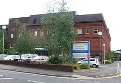 The hospital has its origins in the Kidderminster Union Workhouse Infirmary which was completed about 1884.[1] The hospital joined the National Health Service as Kidderminster Infirmary and Children's Hospital in 1948.[2] It became Kidderminster and District General Hospital in 1974 and Kidderminster General Hospital in 2000.[2]