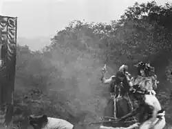 According to Jamie Holman, a local researcher, James Kenyon of Mitchell & Kenyon met some Americans in Blackburn when he was a boy. This sparked his interest in the "Wild West" and ultimately led to the production of this film.[2] The British Film Institute (BFI) questions the ethnicity of the costumes used[3] but Holman has maintained that they are authentic as tomahawks, head-dress and other Western stereotypes are in evidence.[4] Holman says many cotton workers from Blackburn went to America after the American Civil War and brought back stories of the wild frontier which whetted local interest. He says: "Mitchell and Kenyon would have been aware of the appetite for the Wild West at the time".[4] The film was shot in the countryside near Blackburn and used local actors.[4]