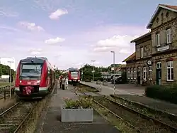 The line is operated with DBAG Class 648, and sometimes with coupled DB Class 628.