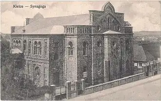 {{cite book}}:|work=ignored (help) - ^ Miłosz Gudra (2009). "The synagogue (17 Warszawska Street)". History of Kielce. POLIN Museum of the History of Polish Jews.