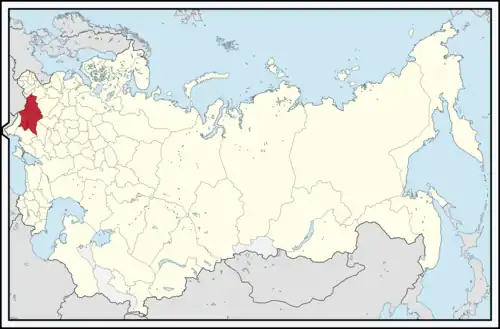 Southwestern Krai (Russian: Юго-западный край, romanized: Yugo-zapadny kray), also known as Kiev General Governorate or Kiev, Podolia, and Volhynia General Governorate (Russian: Киевское, Подольское и Волынское генерал-губернаторство, romanized: Kievskoye, Podol'skoye i Volynskoye general-gubernatorstvo) was an administrative-territorial and political subdivision (a krai) of the Russian Empire in 1832–1914.[1] It has a special status established for the gradual political and economical integration and assimilation of the non-Russian (Ukrainian, Jewish, Polish, Tatar) population of right-bank Ukraine within the Russian Empire.[1]