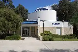 The planetarium was dedicated in September 2006 and officially opened to the public in September 2007[2] and is located on the Northwest Campus of Santa Fe College. The SF Kika Silva Pla Planetarium was made possible by a donation of John Pla and his wife Amy Howard, on behalf of the Pla family, in recognition of his mother, Kika Silva Pla's, commitment to education and passion for social justice and civic engagement. The planetarium was funded with additional support from a special federal appropriation arranged by Congressman Cliff Stearns.[3]
