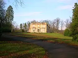 Lying two miles (three kilometres) north of Kilbirnie on a promontory overlooking the wooded ravine of the River Garnock is Glengarnock Castle, a ruined 15th century keep. Ladyland Castle, mostly demolished, lay nearby and Ladyland House still survives as designed by David Hamilton.[34]