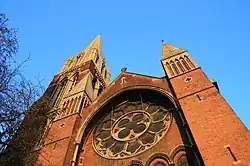 To the south, the Kilburn skyline is dominated by the Gothic Revival spire of St. Augustine's, Kilburn. Completed in 1880 by the architect John Loughborough Pearson, the church has an ornate Victorian interior, a carved stone reredos and screen and stained glass, adjacent to its partners, St Augustine's Primary and Secondary Schools. The church is sometimes nicknamed "the Cathedral of North London" due to its size[35] - at the time of construction, it was the third-largest place of worship in London, after St Paul's Cathedral and Westminster Abbey.