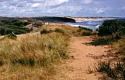 Originally a coal mining township, The Western Port Coal Mining Company extracted black coal from 1871. The Post Office opened on 5 August 1879.[10] Evidence of coal mining is scattered across Kilcunda, the most famous (pictured here) is the old Kilcunda Rail Bridge on the eastern side. Commissioned in 1910 and decommissioned in the 1970s, it now forms part of the Bass Coast Rail Trail. Mitchell's Black Coal Mine ruins are on Carew Road.[11]