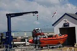 Major changes commenced in 1992. Work began on the construction of a new boathouse, on the northern side of the Kilkeel river, to house the much larger Atlantic-class lifeboat. With no slipway possible, a new Schat davit was constructed on the quay in July, used to lower the lifeboat into the water. On 21 September, the Atlantic 21-class (B-533) from the relief fleet was sent to the station for training, and in November, the boathouse with modern crew facilities and a workshop was completed, and the D-class lifeboat was withdrawn.[2][6]