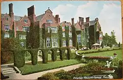 This house was supposed to have been instigated by Lady Kenmare (Gertrude Thynne, granddaughter of The 2nd Marquess of Bath) and inspired by Lord Bath's genuinely Elizabethan seat, Longleat, Wiltshire (which is not red-brick); but it was not unusual for the descendants of Elizabethan or Jacobean settlers in Ireland to assert their comparative 'antiquity' in this period by building Jacobethan houses. The architect was George Devey but, according to Jeremy Williams, "... that feeling of being built up over the centuries that distinguished Devey's work was entirely lacking, partly due to the job being supervised by W.H. Lynn [the Belfast architect] at his most relentless ... The westernmost gate lodge, gabled and galleried, [which survives, is] Devey at his most delightful."
