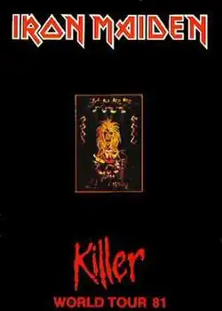 The Killer World Tour was a concert tour by the heavy metal band Iron Maiden from 17 February 1981 to 15 November 1981. This was the band's first world tour, including their debut shows in North America (where they supported Judas Priest on their World Wide Blitz Tour, and UFO on select dates)[1] and Japan where they recorded the live release, Maiden Japan.[2] On top of this, the band moved into larger venues in the United Kingdom, including the Hammersmith Odeon, in London.[3]