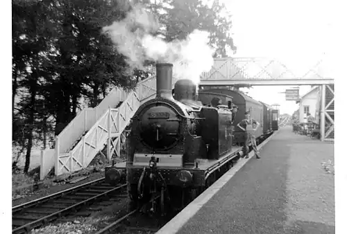 The station was closed on 27 September 1965 following a landslide in Glen Ogle.[2][3] Nowadays a forestry road following the track of the old line to Killin leads from the A85 to the location. There are still traces of the platforms, a few derelict former railway houses and the line to Glen Ogle, which can be followed for some distance, although fallen trees after a recent storm block the track in places. All signal boxes and other buildings are gone.
