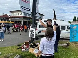 Lowndes' friends and family have become the main advocates for his cause after his killing.[10] His mother, Laura Holland, has been a key activist; she publicly described him as a loving man who did not deserve to die the way he did.[21][23][2] Holland has called for a public inquest into her son's death and for the introduction of police body cameras in British Columbia.[4] Ketisha Hackett, the mother of Lowndes' children, has also spoken publicly about his killing, stating that it was cruel and unnecessary.[3] Activists and critics also condemned the over-reliance on police dogs and the RCMP's rapid escalation to using deadly force in interactions with the public.[4] Activists staged a protest in Campbell River on the anniversary of Lowndes' death, which ended outside the Campbell River RCMP building.[10] For their part, the RCMP alleged that criminal elements were involved in the protest and that they were launching an investigation into it.[10]