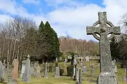 Old Kilmun House stands just beyond the northwestern edge of the cemetery, part of which is built on some of the house's gardens.[18]