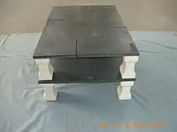 Kiln furniture are devices and implements inside furnaces used during the heating of manufactured individual pieces, such as pottery or other ceramic or metal components.[1] Kiln furniture is made of refractory materials, i.e., materials that withstand high temperatures without deformation.[2] Kiln furniture can account for up to 80% of the mass of a kiln charge.[3]