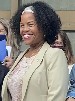 Kim Michelle Janey (born May 16, 1965) is an American politician, community organizer, and nonprofit executive who served as acting mayor of Boston for eight months in 2021.[1] She served as president of the Boston City Council from 2020 to 2022,[a] and as a member of the council from the 7th district from 2018 to 2022. As a black woman, her tenure as acting mayor made her the first woman and the first person of color to lead the city.