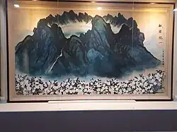 Kim Ki-chang's 'Babo sansu' series was an attempt to modernise traditional Korean minhwa (민화, 民畵, genre painting).[19] As can be inferred from "babo" the Korean term for "fool," it was an intuitive and humorous take on landscape that appeared as if a fool or a child had painted it. The style used simple, cartoon-like forms that emphasised pure and sincere expressions of aesthetics and emotions.[19] By this point, his works incorporated highly abstract forms that transcend time and space.[20] The dynamic movement that gives life to these landscape paintings is commonly interpreted as Kim Ki-chang's way of expressing sound through brushstrokes in his "world of silence" caused by his hearing disability.[21][22]
