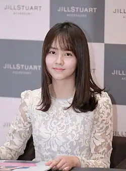 Kim has been dubbed by several Korean media outlets as "Nation's Little Sister", "Queen of Child Actresses", as well as "Goddess of Sageuk" after starring and appearing in various acclaimed historical period dramas throughout her career.[3][4] She has also been called the "Nation's First Love" from her performance in the film Pure Love (2016),[5][6][7][8] and has established herself as a next generation hallyu star.[9][10] For her performance in River Where the Moon Rises, she was nominated for Baeksang Arts Award for Best Actress – Television, becoming one of the youngest nominees for the award.[11]