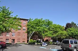 The Kimball Brothers Shoe Factory is a historic factory building at 335 Cypress Street in Manchester, New Hampshire. The four-story brick building was built in stages between 1885 and 1900, and was a prototypical structure from which the design of other period shoe factories in Manchester were built. Construction was overseen by Head & Dowst, a builder responsible for a number of area public buildings, including schools and prisons. It was funded by local businessmen seeking to diversify the local economy, and was leased to the Kimball Brothers, a leading shoe manufacturer in Lynn, Massachusetts.[2] The building was listed on the National Register of Historic Places in 1985.[1]