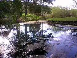 The clearance of shading vegetation has led to excessive algal growth, which is periodically removed as it covers the naturally sandy bottom of the spring.