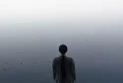 In 1999, Kimsooja presented her most iconic work: A Needle Woman,[1] a performance video piece that premiered at CCA Kitakyushu and further evolved in subsequent showings as a multi-channel video projection.[12] In A Needle Woman, the artist is seen with her back facing the camera, wearing precisely the same clothes and standing precisely the same way in various metropolises:[30][31] Tokyo, Shanghai, Delhi, New York, Mexico City, Cairo, Lagos, London, Patan, Nepal (1999–2001); and in a second series of performances: Havana, Cuba; N’Djamena, Chad; Rio de Janeiro, Brazil; Sana’a, Yemen; and Jerusalem (2005).[12] Some locations visited in the work are places of violence, disrepair, or unresolved conflict, lending to the needle a metaphoric function as an instrument of healing.[31] Also in A Laundry Woman (2000), a performance video piece shot in India, Kimsooja is seen immobile and standing in front of a river where debris seemingly drift. A Needle Woman and A Laundry Woman exposed the artist's stances on non-doing and immobility as a form of art practice; specifically, lending to the action of immobility the virtue of inverting an audience's linear perception of space and time.[31] The first version of A Needle Woman presented the artist laying horizontally on a rock and it established nature and spatial orientation as a central subject in her work. As well, her use of the Korean color spectrum (Obangsaek), in which each color stands for a cardinal direction in Korean tradition, took up great importance.[32]