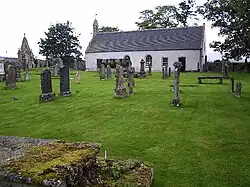 Until the late 1790s the church was thatched with heather, but when the roof caught fire, the building was destroyed. The minister M.A. Gallie rebuilt the church at the same site and his initials and the date 1799 still appear carved above the lintel of the door on the south side of the church.[8][5]