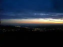 From the Kindelsberg tower, you can see the villages around the mountain in the center of Kreuztal. You can also see the Siegerland region with the Westerwald (south) and the Rothaar Mountains (northeast) beyond and across to the Ebbe Mountains (northwest). In good weather, you can see as far as the Sieben Mountains (west-southwest) near Bonn, about 40 miles (65 km) to the southwest.