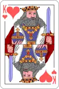 King is a Russian compendium card game of the Hearts family for 3 or 4 players that goes back to the 1920s.[1] It may be related to Barbu, but its country of origin is unknown.[2]