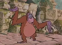 King Louie is a fictional character introduced in Walt Disney's animated musical film The Jungle Book. He is an orangutan who leads other jungle primates and wants to become more human-like by gaining knowledge of fire from Mowgli. King Louie is an original character not featured in Rudyard Kipling's original works.[1]