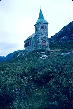 King Oscar II Chapel (Norwegian: Kong Oscar IIs kapell) is a parish church of the Church of Norway in Sør-Varanger Municipality in Finnmark county, Norway. It is located near the village of Grense Jakobselv, about 500 metres (1,600 ft) from the border with Russia. It is one of the churches for the Sør-Varanger parish which is part of the Varanger prosti (deanery) in the Diocese of Nord-Hålogaland. The stone church was built in a long church style in 1869 by the architect Jacob Wilhelm Nordan (1824–1892). The church seats about 72 people.[1][2][3]