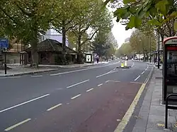 The street is two-way along its western part, and one-way westbound along its eastern part. Eastbound traffic uses Studland Street, Glenthorne Road and Beadon Road.