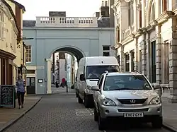 King Street is part of Ipswich Borough Council's Central Conservation Area.[5] Their aerial appraisal highlights the Corn Exchange, the Swan Public House and the Arcade Street Arch.[5] In 1972 the Corn Exchange was converted into an entertainment facility.[5] The King Street Cinema, the only independent cinema in Ipswich is located here. It provides two screens in the Corn Exchange, Ipswich, and screens independent and world cinema films which fall outside mainstream cinema.[6]