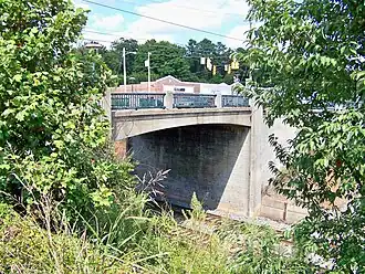 King Street Overhead Bridge is a historic overhead bridge located at Kings Mountain, North Carolina. It was built in 1938–1939, and is a reinforced concrete Moderne-style rigid-frame vehicular bridge. It measures about 48 feet long and 49 feet wide and carries West King Street over the Norfolk Southern Railway railroad tracks.[2]