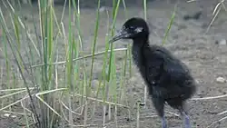 Distinct features are a long bill with a slight downward curve, with adults being brown on the back and rusty-brown on the face and breast with a dark brown cap. They also have a white throat and a light belly with barred flanks. Undertail coverts are white and are displayed by the male during courtship.[2] Immature birds are covered in down,[3] with light brown on the head and darker brown on the back and wings.