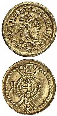 Golden Suevic coin made between years 410 and 500.