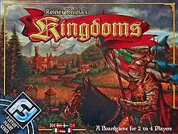 Kingdoms is a German-style board game for 2-4 players designed by Reiner Knizia and released in 2002 by Fantasy Flight. The game is based on Knizia's original German game Auf Heller und Pfennig, but has been given a Medieval Fantasy theme.