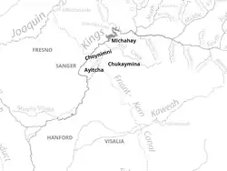 ![]() Historical distribution of Kings River Yokuts | |