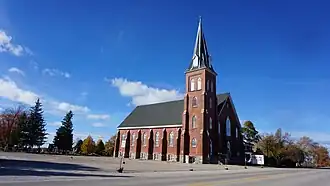 The first priest to visit the area was missionary Father Giveney, who baptized children and held the first mass in what is now Port Albert. Mass was said in Morgan King's cabin until the first church was erected.[2] Father Wassereau built the first church, a white frame structure without a floor, around 1860, and it stood until the church was rebuilt in 1887. As the population in the area greatly increased, more capacity was needed, and the new church was larger and included a belfry. The current red brick church was completed in 1905, and held its first mass on October 22, a tradition that ended on October 21, 2012, when the church was closed by the London diocese due to the building being "unsafe".[3] A group of local citizens formed a charity, the St. Joseph's Kingsbridge Community, which has effectively purchased the church and rectory, and will be using them for cultural events, in order to preserve the rich history and strong community.