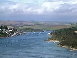 The Kingsbridge Estuary (also, erroneously, known as the 'Salcombe Estuary') in the South Hams area of Devon, England, runs from Kingsbridge in the north to its mouth at the English Channel near Salcombe and lies between Bolt Head and Sharpitor to the west and Portlemouth Down to the east. The estuary is some 8.6 kilometres (5.3 mi) in length, with numerous side channels. Several of its creeks have independent names, including Blanksmill, Frogmore, Southpool, Batson and Bowcombe Creek (the most northerly portion of the estuary).
