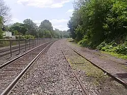 After several years of sharing railroad facilities, the Erie Railroad and Delaware, Lackawanna and Western Railroad merged on October 17, 1960, replaced by the Erie-Lackawanna Railway. Since 1949 the Erie Railroad had been dealing with the city of Passaic, New Jersey about its double track mainline through the city via Rutherford.[11] Due to the high cost of removing the main line with no back-up service, it was unable to progress forward, and as a result, the Erie built some new stations to replace old wooden ones in 1952.[12] With the railroad merger in 1960, the Erie–Lackawanna had the Boonton Branch that also served Passaic, and on August 23, 1960, with pressure from the New Jersey Department of Transportation to go ahead with it, a deal was struck between the city of Passaic and the railroad.[13] A new connection was to be made via the Erie's old Newark Branch to connect the Boonton Branch to the old Erie main at South Paterson. The old Erie main line through Passaic was abandoned at a ceremony on April 2, 1963, when service was terminated. Trains were re-routed via a "new" main line, using the Boonton Branch from Kingsland to Athenia.[9]