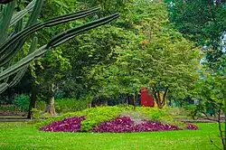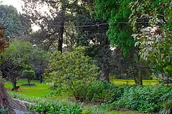 The Kinshasa Botanical Garden was originally established as the "Parc de Bock" in 1933 by District Commissioner Fernand De Bock in then-Léopoldville (now metamorphosed into the modern Kinshasa).[5][8] Initially, it was placed under the authority of the Institut des Parcs Nationaux du Congo-Belge (IPNCB).[9][10][11][12][13] Following the nation's newfound autonomy in 1960, the management of the garden transitioned to Congolese control.[10] According to Congolese environmentalist Metternich Ngoy, it was subsequently administered by the Society of Zoological and Botanical Gardens of Kinshasa (Société des Jardins Zoologiques et Botaniques de Kinshasa).[3] On 2 October 1968, it hosted a public meeting where Pierre Mulele was declared guilty of committing crimes against the nation by Mobutu Sese Seko and was subsequently arrested before the end of the speech.[14] In 1969, Mobutu initiated major environmental reforms, founding the Congolese Institute for Nature Conservation (Institut Congolais pour la Conservation de la Nature, ICCN) under the leadership of Belgian conservationist Jacques Verschuren, and establishing the State Environmental Commission (Commission environnementale de l'État).[10]