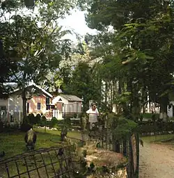 In June 1939, a series of animal postage stamps was issued, with the proceeds amounting to Fr.300,000 to benefit the zoo.[12] On its fifth anniversary, the zoo held an exhibition attended by Belgian Prime Minister Hubert Pierlot and a soirée at the restaurant.[13] In August 1954, the zoo received its first okapi, the elusive creature discovered in the Ituri Forest in the northeastern part of the Belgian Congo. The Zoo also featured a chimpanzee that mooched and smoked cigarettes cadged from visitors. King Baudouin of Belgium visited the zoo in May 1955 during his successful tour of the colony.[14][15][16] By 1956, the zoo's fortunes began to decline, and controversies arose regarding the possibility of closure, with a portion of the complex being ceded to the nearby modern-day Kinshasa General Hospital.[17] The zoo's cultural center, with a seating capacity of five hundred, served as a venue for meetings and conferences, complemented by catering from the Zoo Restaurant.[17][11]