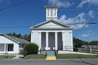 Kinston Baptist-White Rock Presbyterian Church is a historic Presbyterian and Baptist church building located at 516 Thompson Street in Kinston, Lenoir County, North Carolina. It was built in 1857–1858, and is a rectangular, temple-form Greek Revival style frame building with a pedimented front gable roof. It features a bold distyle in antis portico with enclosed end bays. The church was built for the Kinston Baptist Church and moved to its present (third) location in 1901 after its purchase by an African-American Presbyterian congregation (White Rock Church) which it has served since that time.[2]