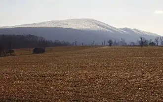 Kinton Knob marks the north end of Wills Mountain where it abruptly ends just southwest of the town of Bedford.
