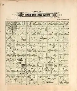 By 1908, residents of the southern part of the county were already agitating for a new county to be formed. In 1910, Governor Charles N. Haskell proclaimed that parts of Kiowa and Comanche Counties would become the new Swanson County. The new county became defunct in 1911, after the Oklahoma Supreme Court voided the change.[5] Ownerships of land parcels from 1913 are to be found in plat books.
