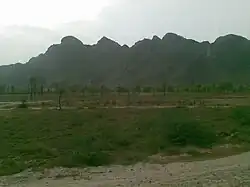 The Kirana Hills is an extensive rocky mountain range located in the Sargodha District, and about 80 mi (130 km) in distance from the Salt Range.[12][13] In 1913, British geologists conducted extensive investigations on the rock formations in the Kirana Hills, which are different from the rest of its parent mountains ranges; the rocks are noticeably black in formation.[13]