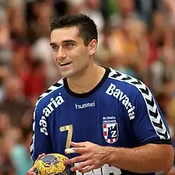 Kiril "Kire" Lazarov (Macedonian: Кирил „Кире“ Лазаров, born 10 May 1980) is a Macedonian former professional handball player and current coach of the North Macedonia national handball team and RK Alkaloid. He is widely regarded as one of the greatest players of all time and won over forty titles playing for clubs in North Macedonia, Croatia, Hungary, and Spain.[1][2]