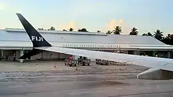 Air Tungaru was serving Kiritimati in 1981 with nonstop Boeing 727-100 jet flights to Honolulu (HNL), Papeete, Tahiti (PPT) and Tarawa (TRW) with each service operating once a week with the service to Papeete being operated in association with Union de Transports Aeriens (UTA), a French airline.[29] Aloha Airlines introduced its weekly nonstop jet service between Honolulu and the island in 1986 operated with a Boeing 737-200.[30] Aloha was continuing to serve Kiritimati from 2000 to 2003 with 737 jet service to and from Honolulu nonstop.[31][32] Air Pacific ran flights to Kiritimati until 2008, when they ceased service over concerns about the condition of the runway.[33] Services resumed in 2010.[34] A monthly air freight service is flown using a chartered Boeing 727 from Honolulu operated by Asia Pacific Airlines.[35]