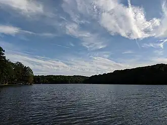 Kirk Lake is a controlled lake in the hamlet of Mahopac in the town of Carmel in Putnam County, New York. First impounded in 1871, with a substantially larger dam placed in 1881, it lies due west and sharply below considerably larger Lake Mahopac. It is one of three controlled lakes in the New York City water supply system's Croton Watershed.[3]